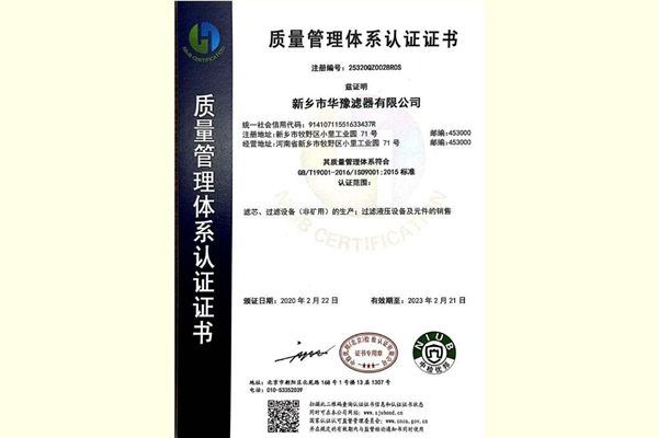 新鄉(xiāng)市華豫集團質(zhì)量管理體系認證書
