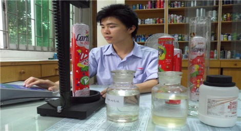 QC is is testing the welding quality with the top ball experimental instrument.