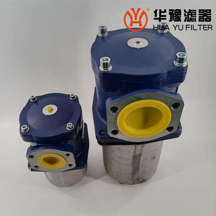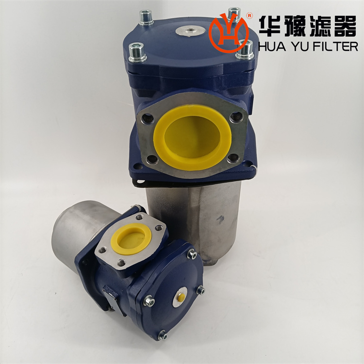 該過濾器的濾芯采用化纖過濾材質,具有過濾精度高,通油能力大,初始壓力損失小,納污量大等優點,并裝有壓差發訊器及旁通閥。當濾芯堵塞到進出油口壓差為0.35MPa時,便發出開關信號,此時應更換濾芯。如果不能馬上停機或無人來更換濾芯,裝在濾芯上部的旁通閥會自動開啟,以保護系統。