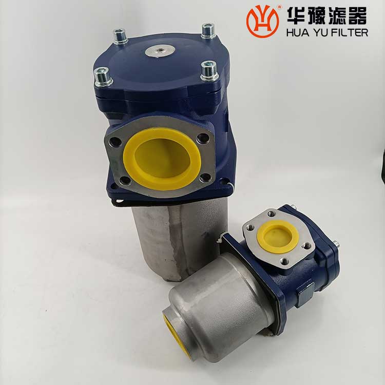 該過濾器的濾芯采用化纖過濾材質(zhì),具有過濾精度高,通油能力大,初始壓力損失小,納污量大等優(yōu)點,并裝有壓差發(fā)訊器及旁通閥。當(dāng)濾芯堵塞到進出油口壓差為0.35MPa時,便發(fā)出開關(guān)信號,此時應(yīng)更換濾芯。如果不能馬上停機或無人來更換濾芯,裝在濾芯上部的旁通閥會自動開啟,以保護系統(tǒng)。
