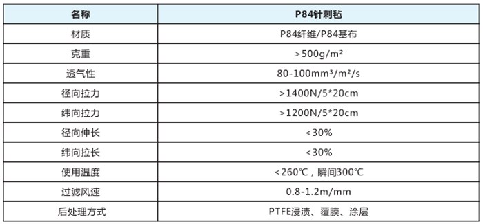 P84針剌氈采用奧地利LENZING公司所生產(chǎn)的P84纖維(即聚酰亞胺)經(jīng)三維針刺而成,具有很好的耐高溫性能,耐溫達(dá)280℃,且P84纖維截面呈不規(guī)則葉狀,可以大大提高過濾效果,纖維本身還有一定的抗水解、抗氧化性,該產(chǎn)品耐溫性好、過濾效果好、廣泛地適用于混凝土攪拌、水泥、垃圾焚燒、燃煤鍋爐等復(fù)雜工況條件下使用。