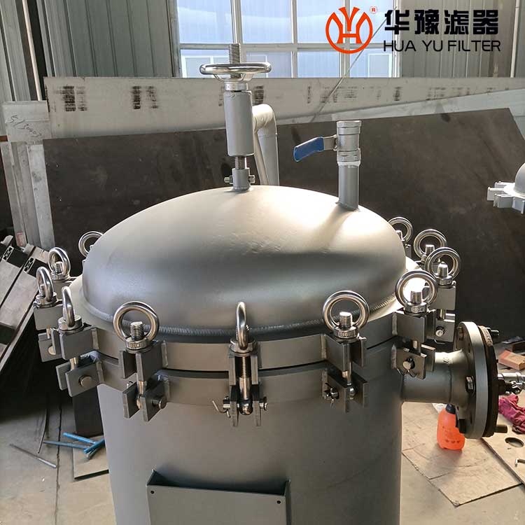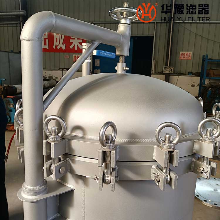 5)擰開上蓋吊帽,提起上蓋,多袋濾機(jī)需轉(zhuǎn)過一定角度。