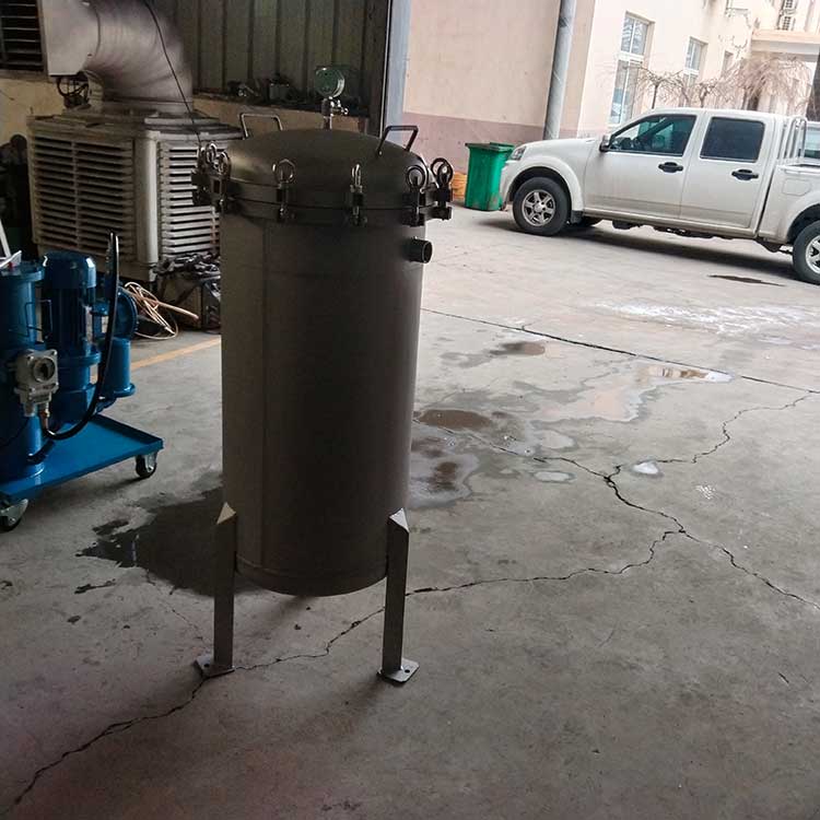 袋式過濾器是一種壓力式過濾裝置,主要有過濾筒體、過濾筒蓋和快開機構(gòu)、濾袋、加強網(wǎng)等主要部件組成,濾液由過濾機外殼的旁側(cè)入口管流入濾袋,濾袋本身是裝置在加強網(wǎng)籃內(nèi),液體滲透過所需要細度等級的濾袋即能獲得合格的濾液,雜質(zhì)顆粒被濾袋攔截該機更換濾袋十分方便,過濾基本無物料消耗。袋式過濾器具備構(gòu)造合理、密封性好、流通才能強、操作簡便等諸多長處。尤其是濾袋側(cè)漏機率小,能正確地保障過濾精度,并能快捷地改換濾袋,使得操作成本下降。濾器內(nèi)外表面采取機械噴砂拋光解決,平均、易清洗。我們知道,袋式過濾器所采取的過濾方法是側(cè)進側(cè)出的方法,也可以采取側(cè)進底出的方法,通過管道中的壓力將過濾液體介質(zhì)壓入或抽入袋式過濾器桶體,要過濾的液體介質(zhì)經(jīng)由電拋光沖孔支持濾藍承托的過濾袋的過濾,發(fā)生變化的固液分別到達液體介質(zhì)被過濾的結(jié)果。
